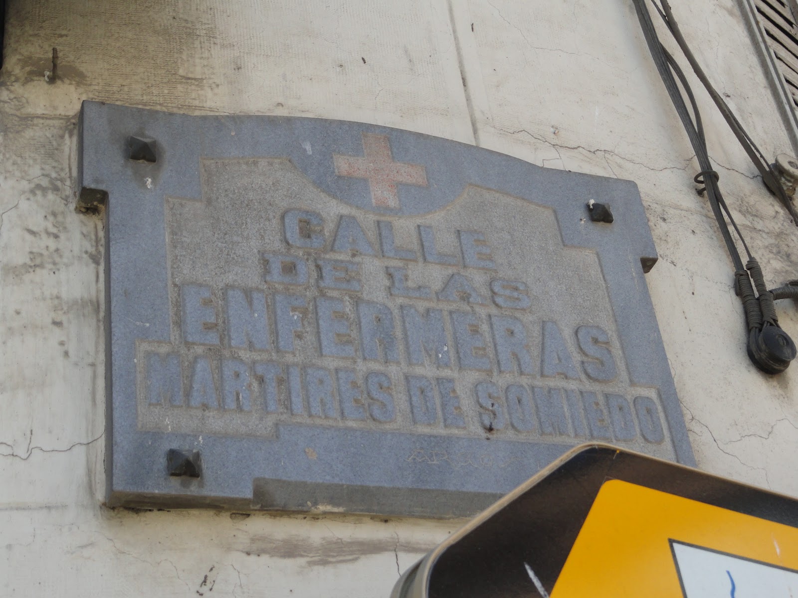 | Placa con la denominación franquista y la actual |